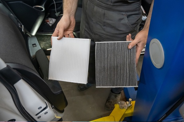 Porównanie zużyty i nowy filtr kabinowy