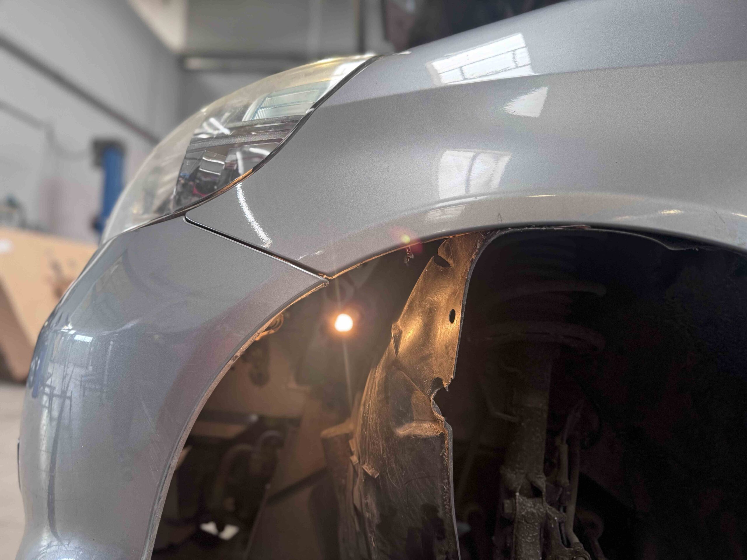 1. Zdjęliśmy koło, co pozwoliło nam odchylić nadkole i uzyskać dostęp do oprawki żarówki.